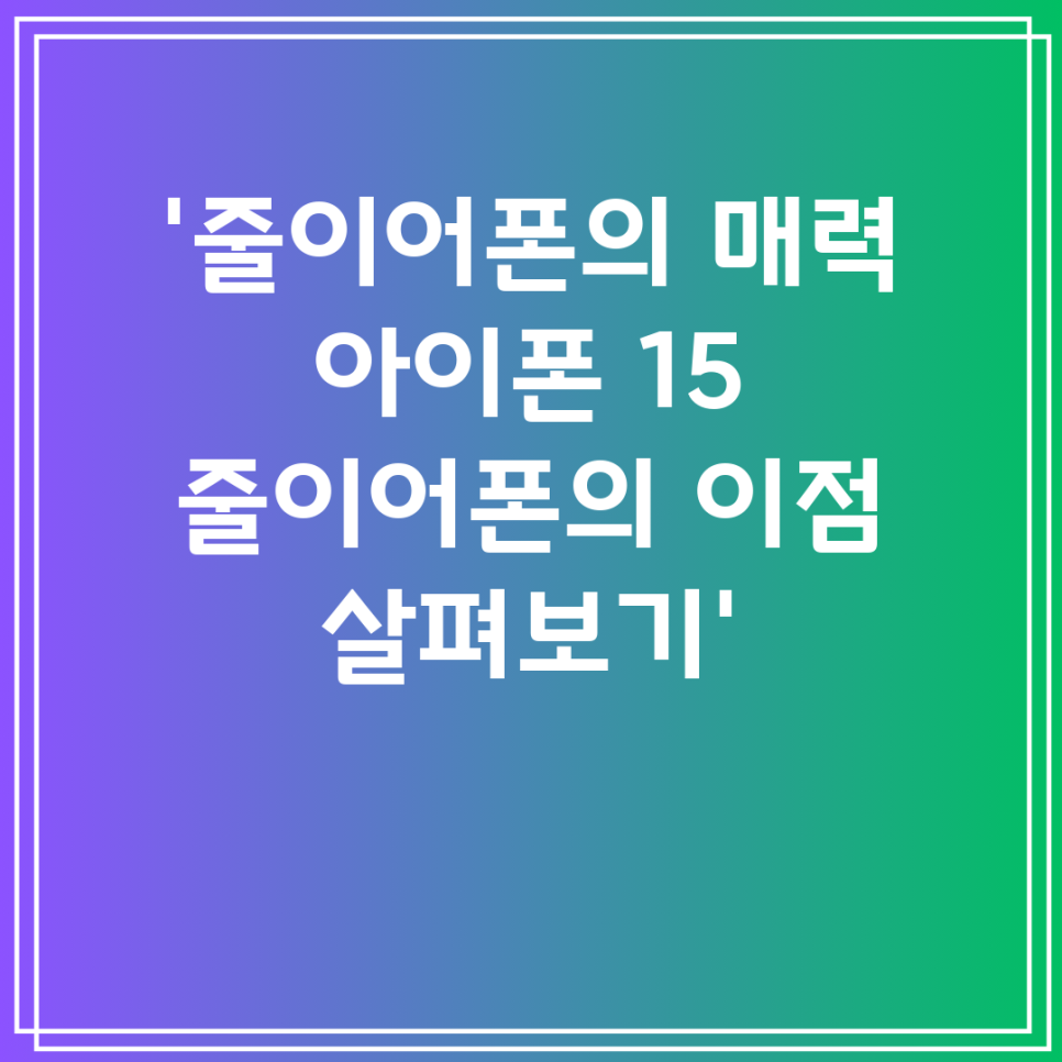 아이폰 애호가여러분! ? 오늘은 마침내 새롭게 출시된 아이폰 15 줄이어폰에 대해 이야기해 보겠습니다. ? 이 리얼 무선 이어버드에 궁금한 점이 있나요? 저는 이 클래시한 액세서리를 둘러싼 모든 것을 알려드리겠습니다! 특징, 장점, 단점, 심지어 국내산 선택 팁까지 놓치지 마세요. 줄이어폰 세계로 뛰어들어 보는 거에요! ?