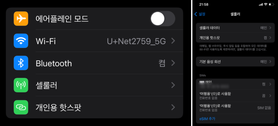 여행지 도착 후 아이폰 이심의