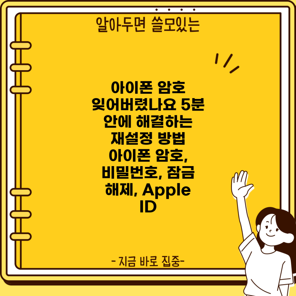 ## 아이폰 암호 잊어버렸나요? ? "아, 잠깐만! 내 아이폰 암호가 뭐였지?" ? 이런 난감한 상황에 처해본 적 있으신가요? 걱정 마세요! 5분이면 충분해요. 이 글에서는 아이폰 암호를 잊어버렸을 때, 간단하게 재설정하는 방법을 알려드릴게요. 지금 바로 따라 해보고, 다시 아이폰을 자유롭게 사용하세요! ?