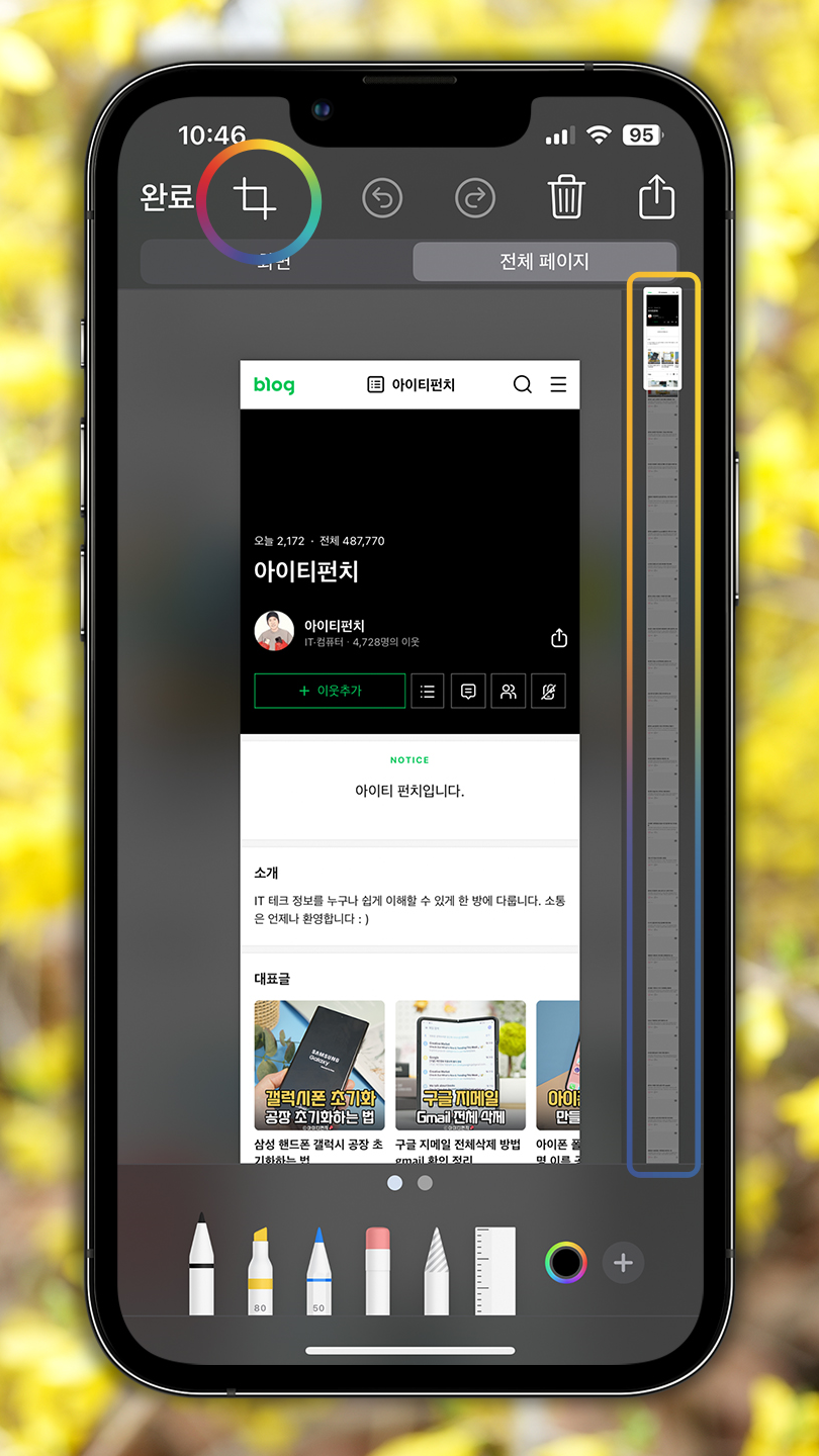 내용이 한 화면을 넘어가는 경우에 아이폰 길게 캡쳐를 사용하면 되는데요. 불필요한 부분은 잘라 내거나 글씨도 추가할 수 있어 유용합니다.