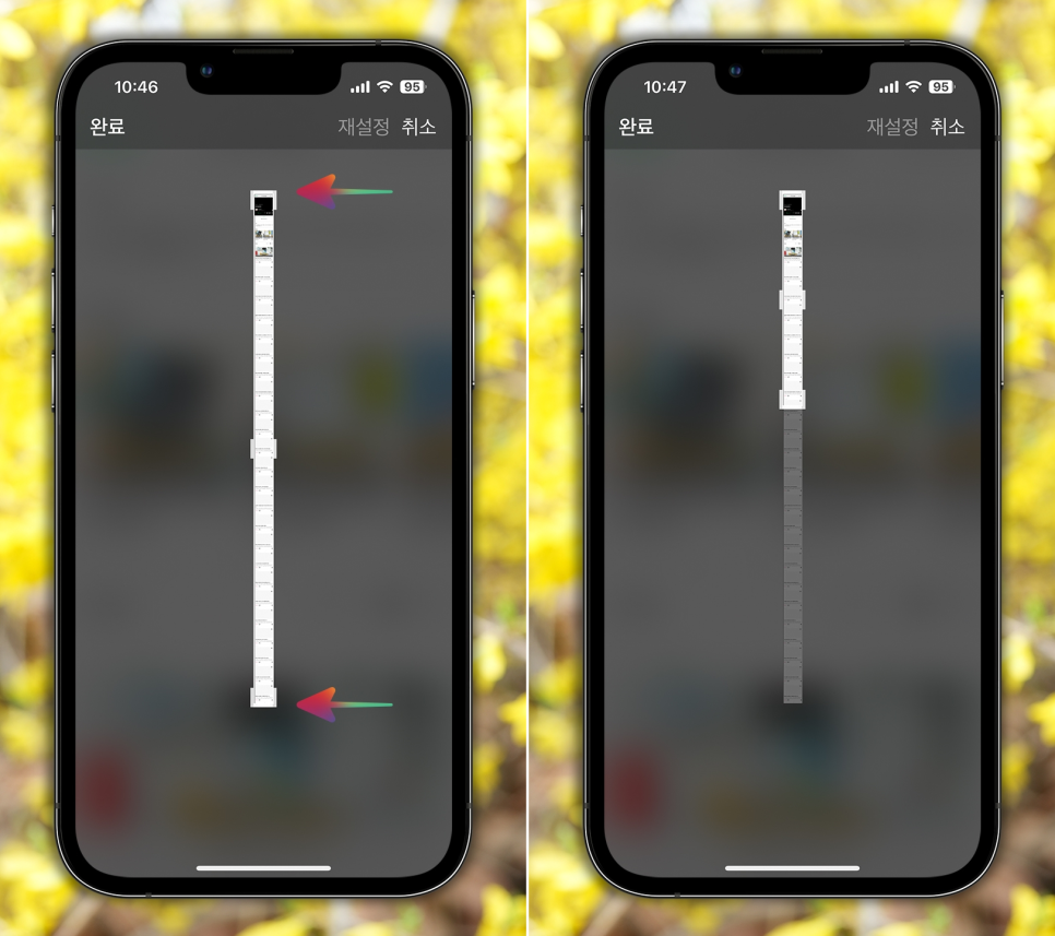 3. 위. 아래. 좌. 우측 범위 조절 바를 조절해서 필요한 부분만 저장할 수 있고요. [완료] 버튼을 눌러 종료합니다.