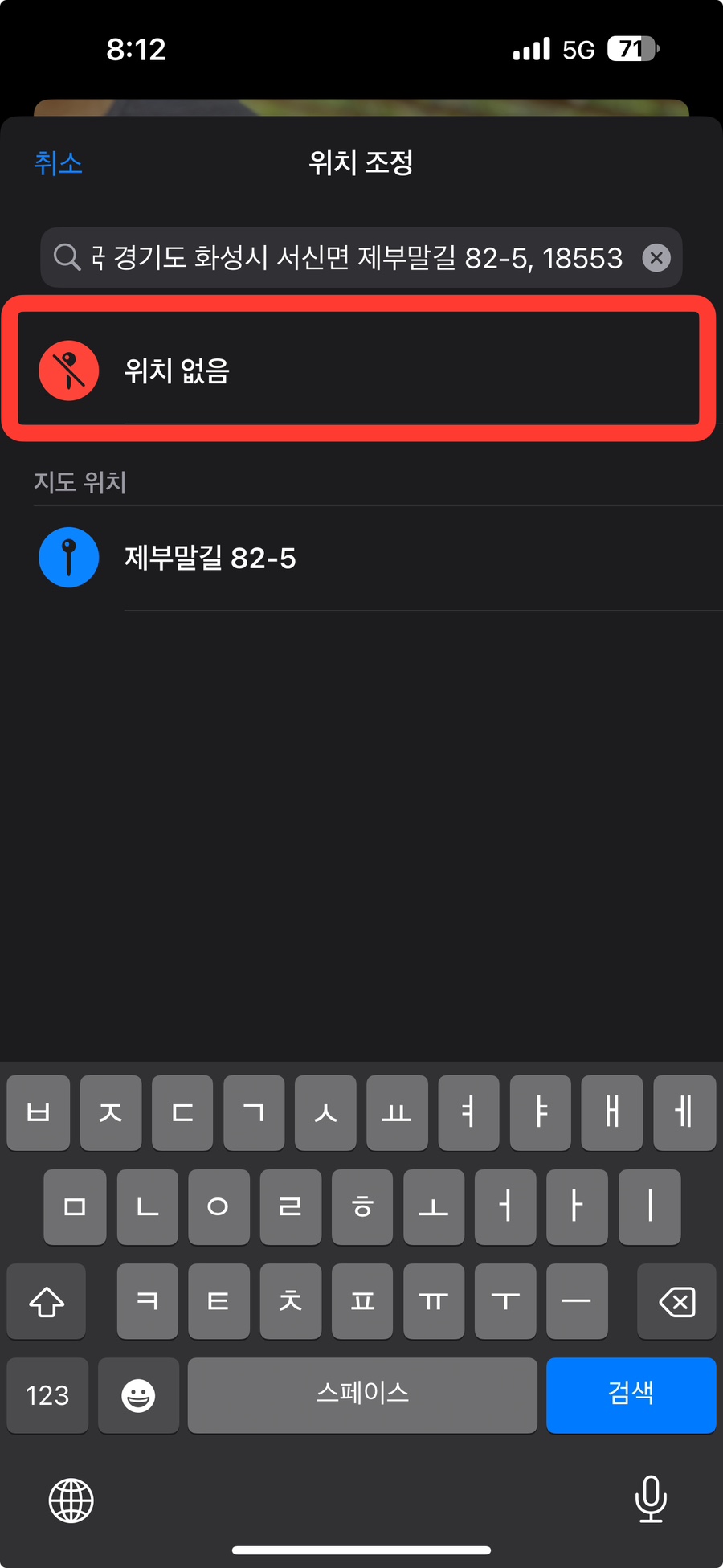 이럴 때는 아래와 같이 사진 별로 위치 정보 삭제가 가능하다.