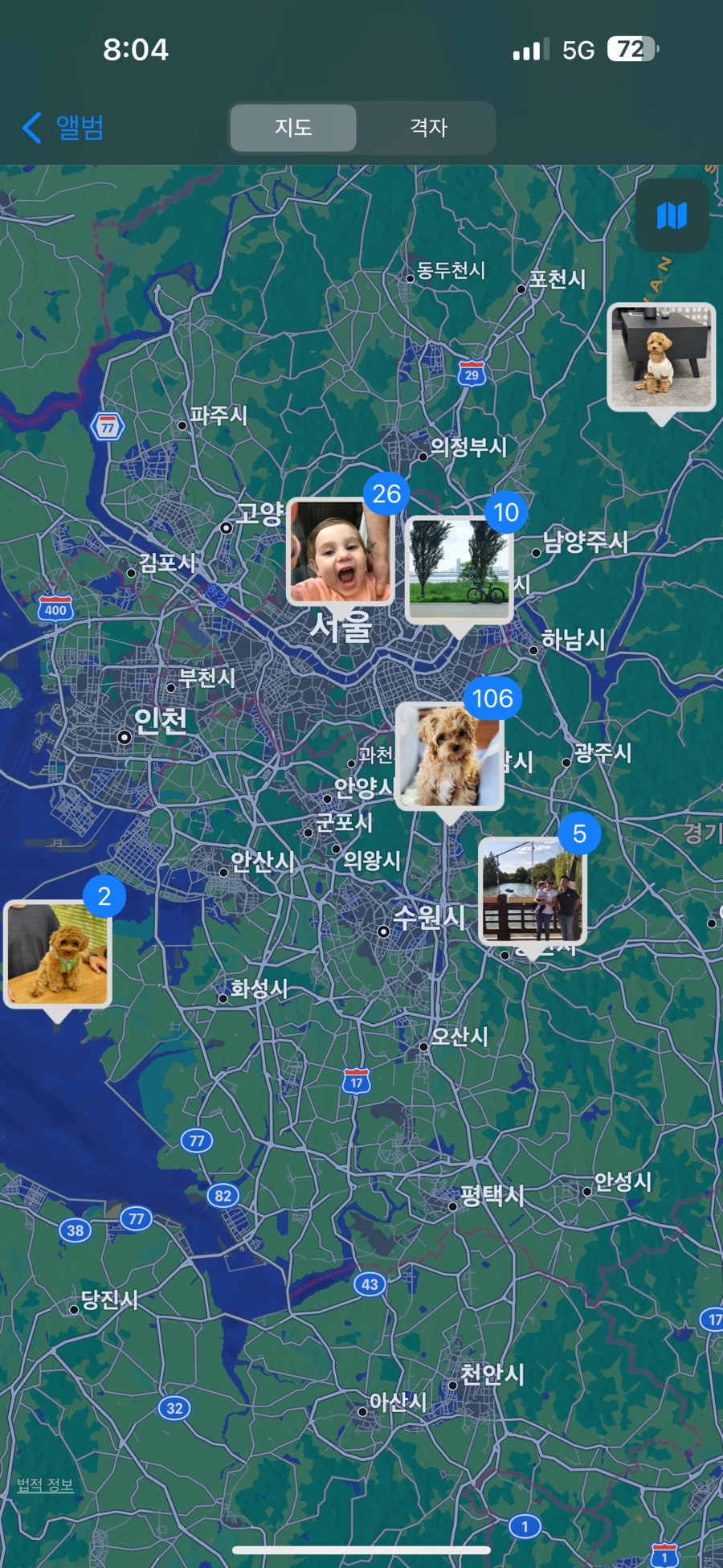 각 위치별로 저장되어 있는 사진들을 모아서 보여준다.