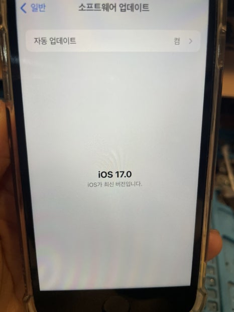 소프트웨어 업데이트를 선택 했다면 화면 하단 가장 밑에 있는 iOS 17(으)로 업그레이드 메뉴를 선택해 주세요!