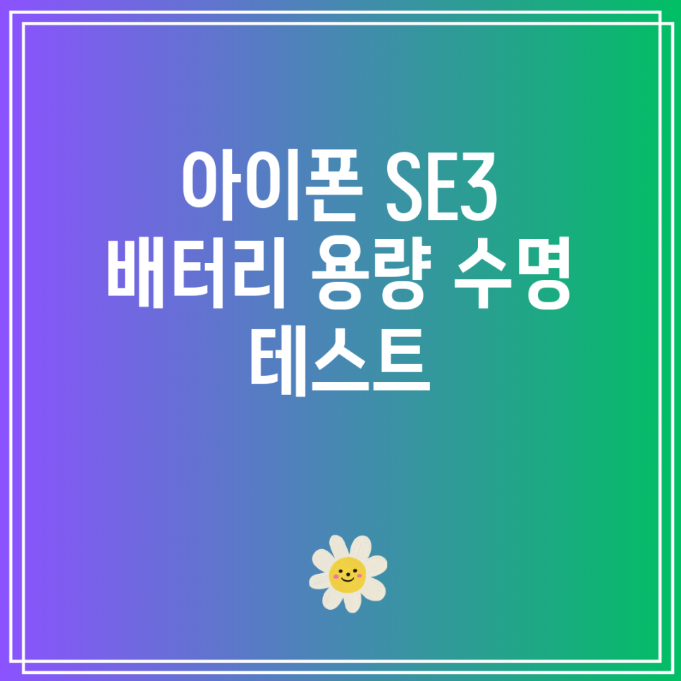 ## 아이폰 SE3 배터리 용량 수명 테스트 ? 안녕하세요! ? 오늘은 아이폰 SE3의 배터리 수명이 얼마나 오래가는지 궁금해서 직접 사용해보고 테스트 해봤어요. ? 제가 하루 종일 사용하면서 느낀 실제 사용 시간과 팁들, 그리고 궁금한 점들을 풀어볼게요! ?
