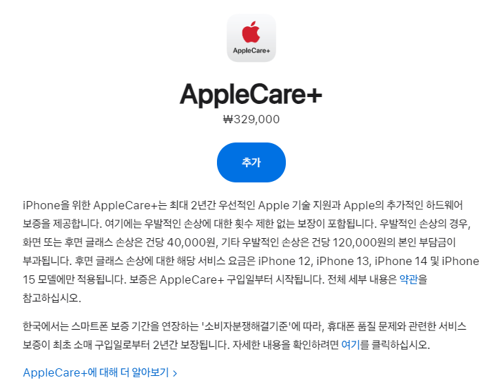 아이폰15 애플케어플러스 가격