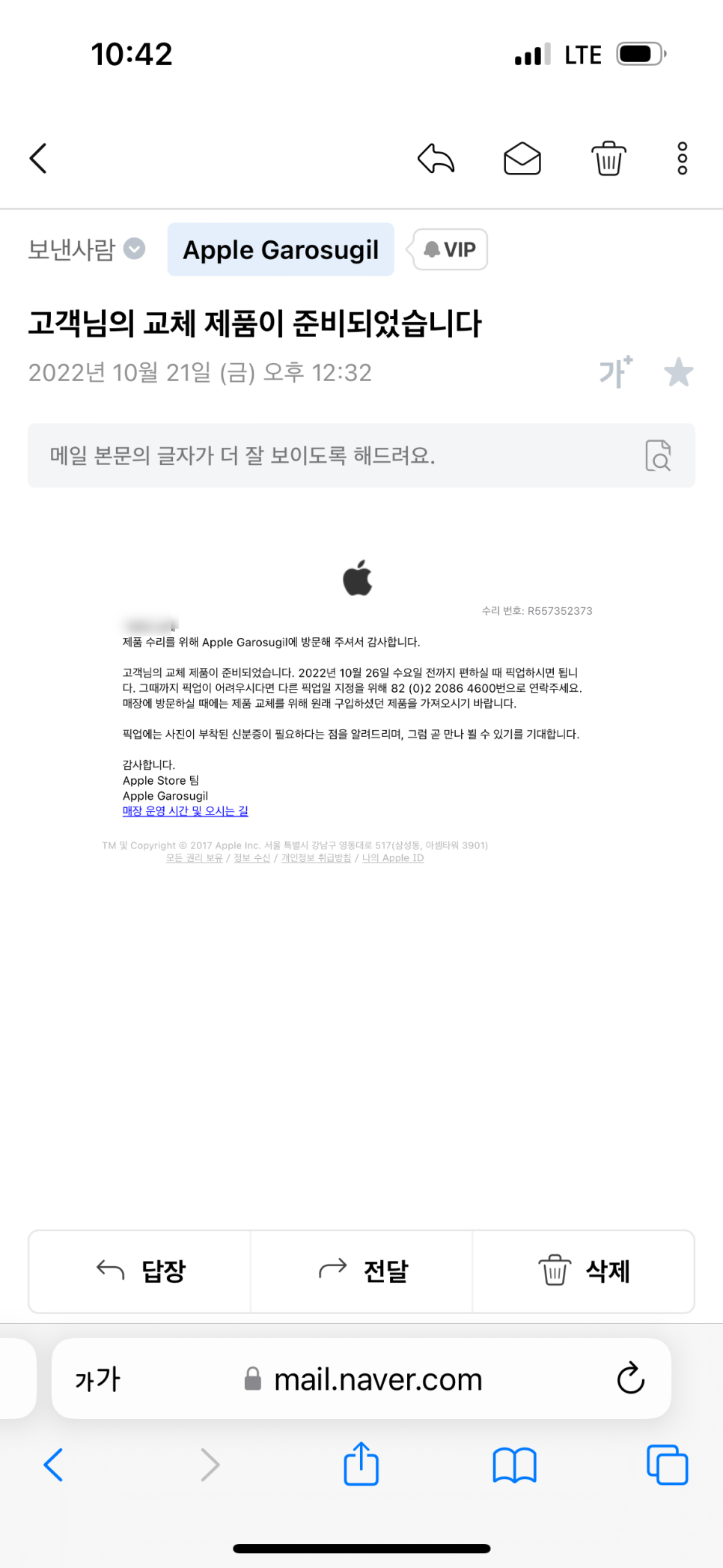 다시 내 교체 아이폰이 준비됐다는 메일이 도착했다