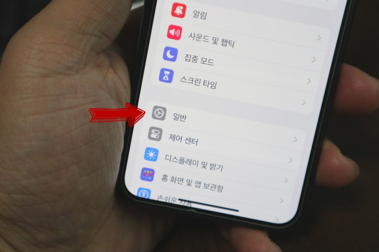 측면 버튼이 고장 나 전원 끄기가 어렵다면 핸드폰 설정에서 아이폰 [설정] - [일반]으로 들어가