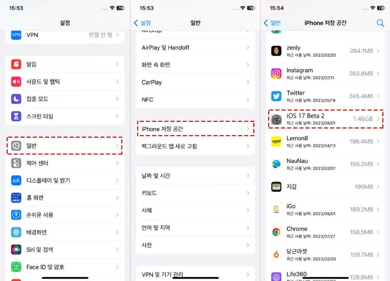 바로 설정 앱을 열고 일반 > iPhone 저장 공간으로 이동하여