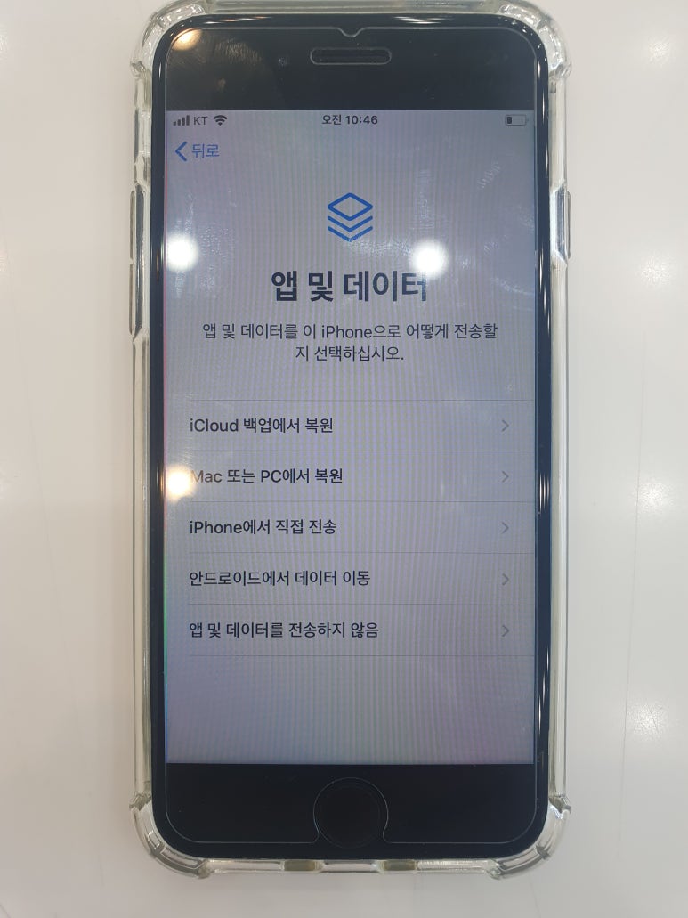 1. 아이폰 설정 완료 후 '앱 및 데이터'에서 대기