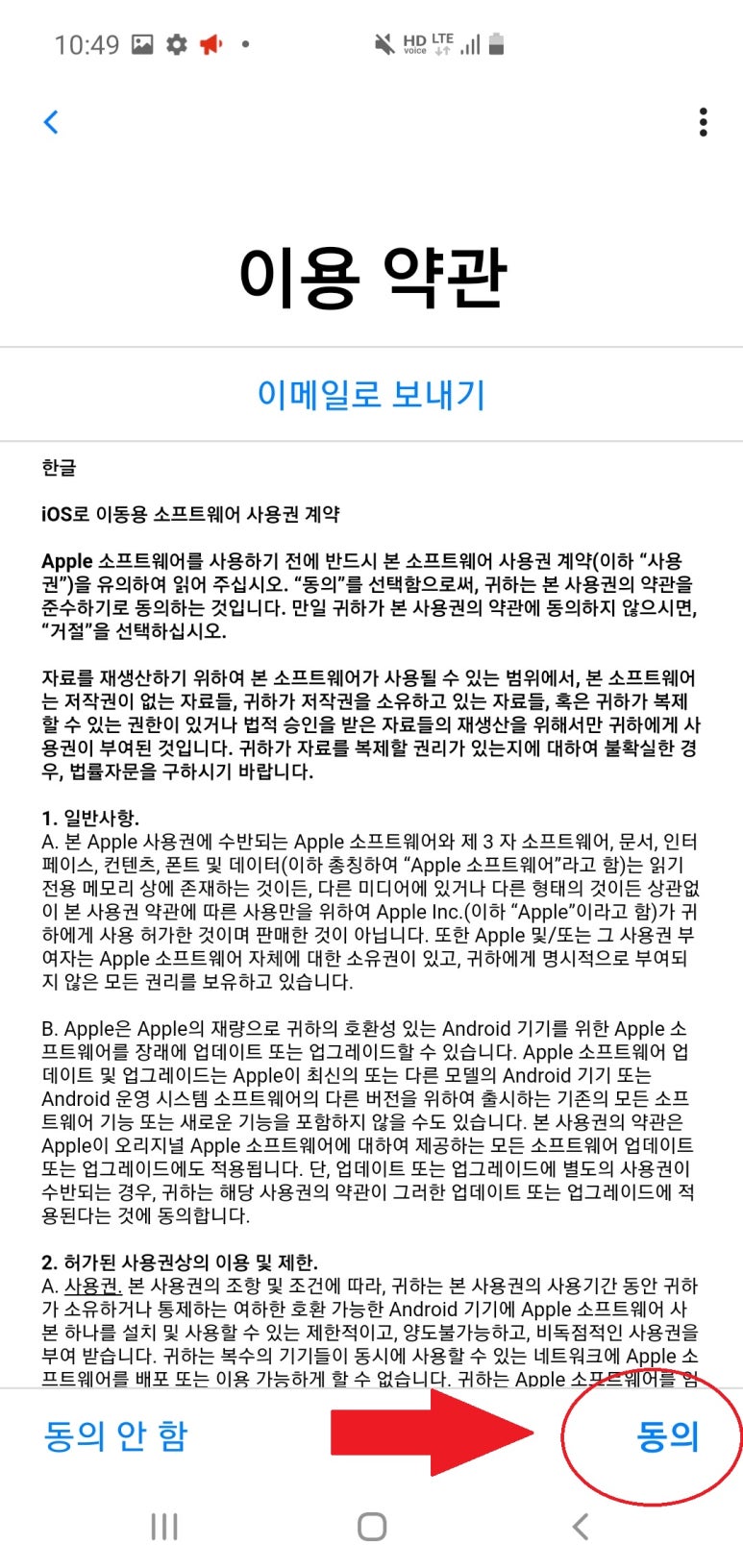 플레이스토어에서 'ios로 이동' 설치 ㅡ> 계속 ㅡ> 동의 (접근성 동의도 모두 허용해 주세요)
