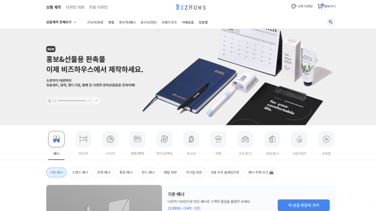 쉽고 편리한 온라인 인쇄출력 서비스 비즈하우스 - 수백 가지 비즈니스 아이템들을 무료로 디자인하고 제작해보세요.