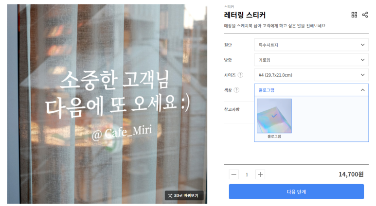 일반적으로 레터링 스티커 제작은 컬러로만 가능한데