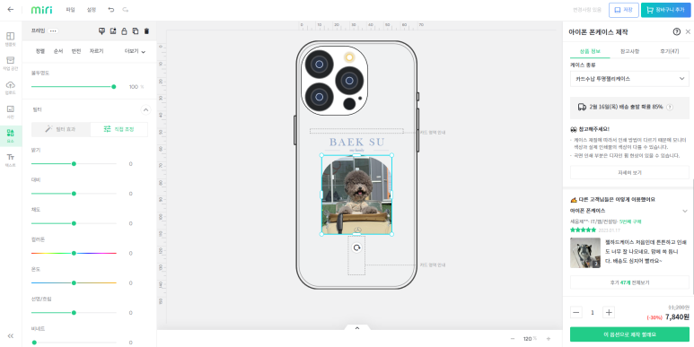내가 커스텀한 디자인은 백수사진과 이름
