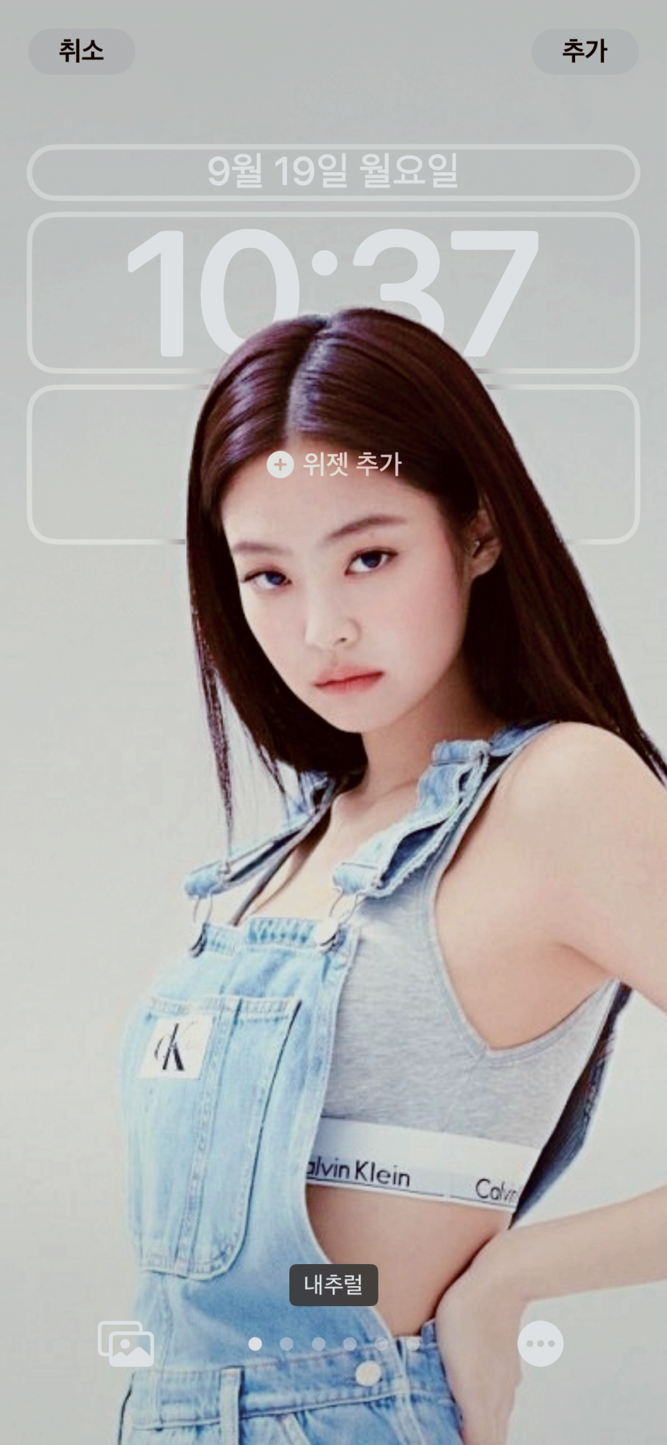 배경화면으로 사용한 연예인은 블랙핑크 제니님이다. 아내가 개인적으로 예쁘다고 좋아하는 연예인인데 먼 훗날 바프를 찍게 되면 제니님 CK 화보 컨셉처럼 찍어보고 싶다며 저장해둔 사진들이다.