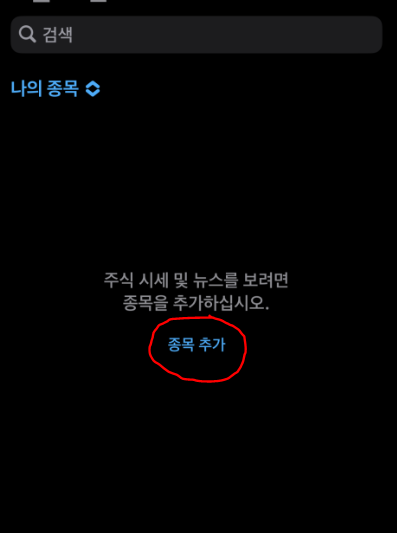 종목 추가를 누른다.