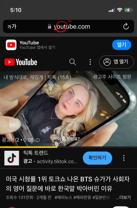 유튜브 앱이 아닌 사파리를 이용해