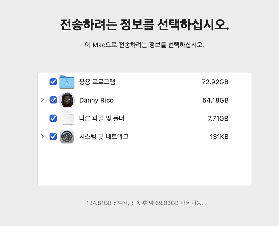 예를 들어, 사진과 영상이 하나도 없을 경우 약 25~35분이 걸릴 수 있습니다. 그러나 앱의 설치 용량과 숫자는 마이그레이션 시간에 큰 영향을 미치지 않습니다.