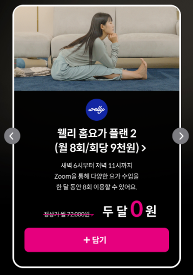 ① 웰리 홈요가 두 달 구독료 0원