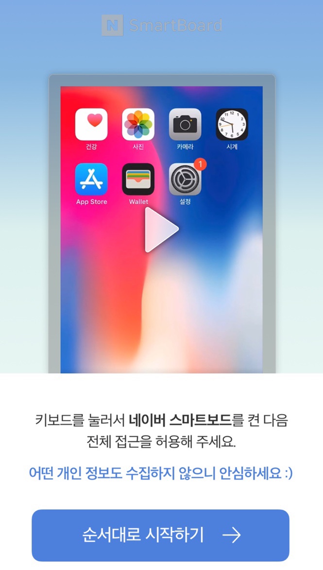 스마트 보드 앱을 다운로드하면 쉽게 설정할 수 있도록 안내 화면이 나와요
