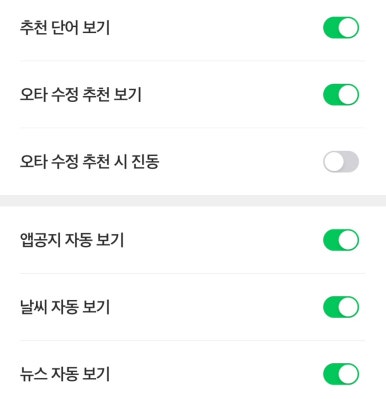 맞춤법 검사 시에 어떤 식으로 보여줄지 와 뉴스, 날씨 등도 볼 수 있게끔 설정할 수 있어요