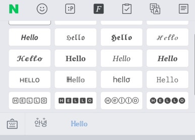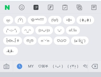 스마트 보드 사용하면 이렇게 텍스트로 만든 이모티콘도 다양하게 사용할 수 있고 글씨체도 아이폰에는 없는 글씨체 사용도 할 수 있어요