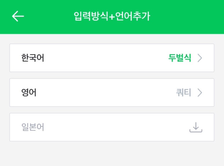 키보드 입력 방식은 두벌식 키보드, 천지인 키보드, 나랏글 키보드 등을 바꿔서 설정하실 수 있어요