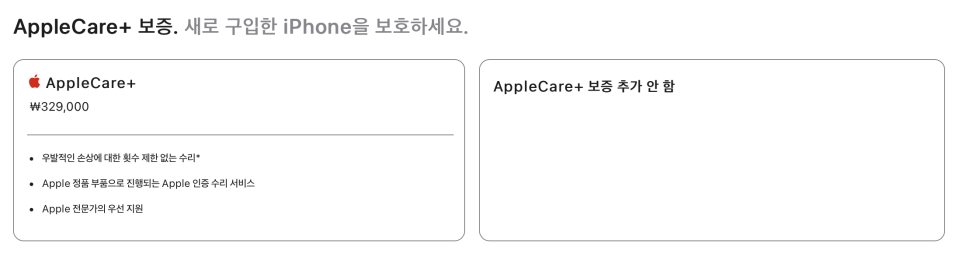 그래서 아이폰을 케이스 없이 사용해보고 싶은 분들은 바로 시도해봐도 좋을거 같네요. 대신 애플케어 플러스는 꼭 가입하는 것을 추천하는데, 2년 동안 파손 횟수 제한 없이 모두 혜택을 볼 수 있습니다. 애플케어플러스가 있어야 마음 놓고 케이스 없이 아이폰을 사용할 수 있습니다.