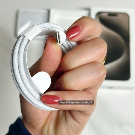 아이폰15Pro 구성은 충전기 본체 없이 충전선만 있어요.