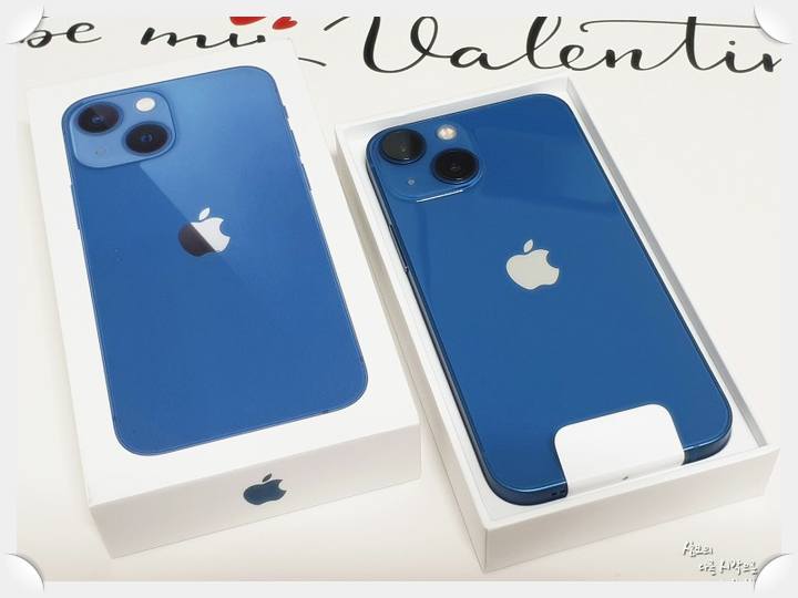 아이폰 13 mini 에 좀더 밝은 느낌의 광택이 있구요.