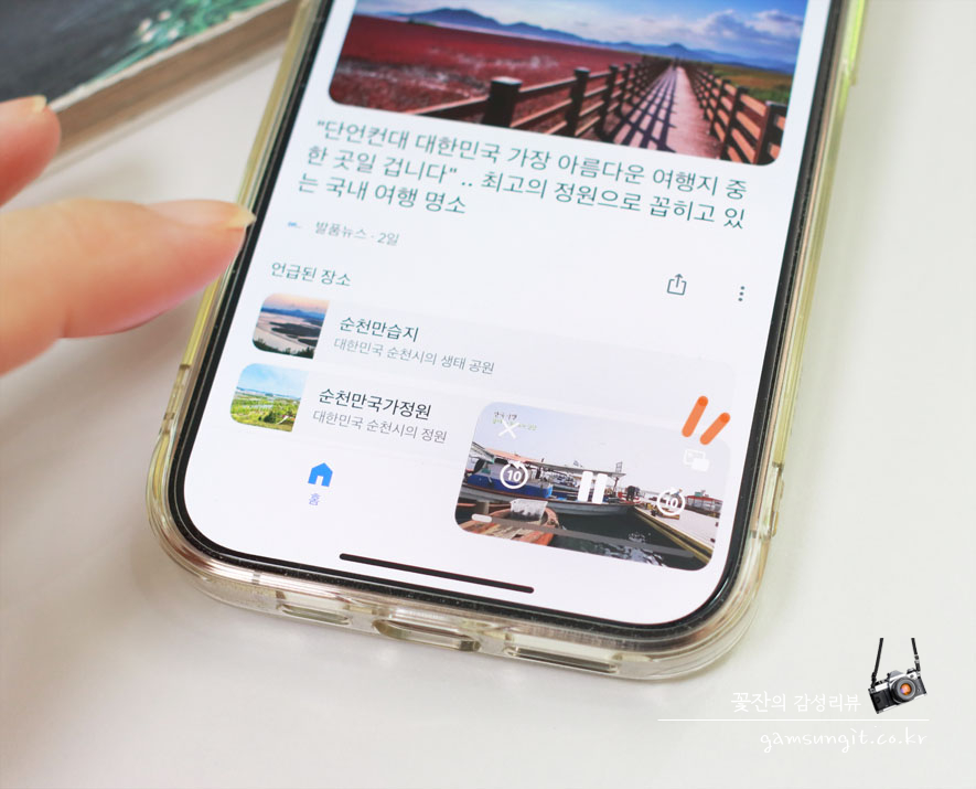 드래그해서 위치를 자유롭게 이동할 수도 있고, 크기 조절도 가능합니다. 다른 내용을 검색하거나 게임을 하면서도 백그라운드 재생 당연히 가능하고요~~