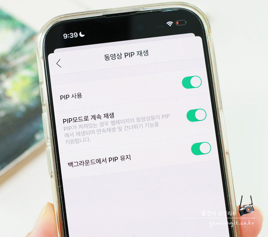 '동영상 PIP 재생'으로 진입해서, 사용 / 계속 재생 / 백그라운드에서 PIP 유지 3가지를 메뉴 활성화해줍니다.