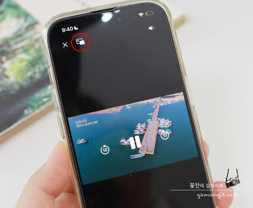 플레이 버튼을 누르면 아이폰이나 아이패드 화면에 풀 화면으로 재생됩니다. 이제 왼쪽 상단의 PIP 버튼을 눌러보면!?