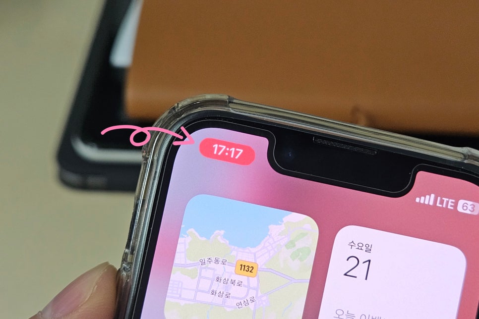 5. 홈 화면으로 돌아와 제어 센터를 열어줄게요. 상단 우측에 있는 배터리 아이콘 부분에서 시작해 아래로 드래그 해주면 제어 센터가 열립니다.