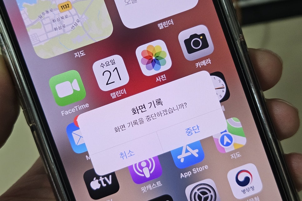 9. 중단하게 되면 녹화물은 사진 앱에 자동 저장됩니다.