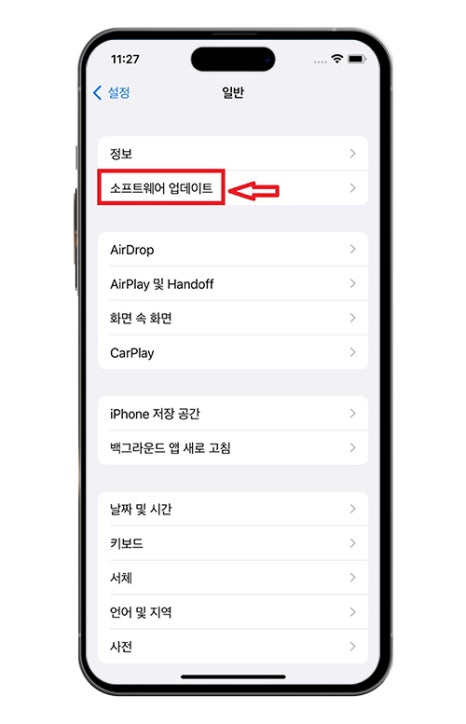 일반에들어오신 후 "소프트웨어 업데이트" 항목을 선택하시게 되시면