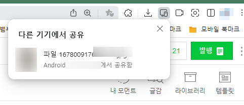 PC 버전 Whale의 오른쪽 상단을 보시면 사진이 성공적으로 전송된 것을 확인하실 수 있습니다.