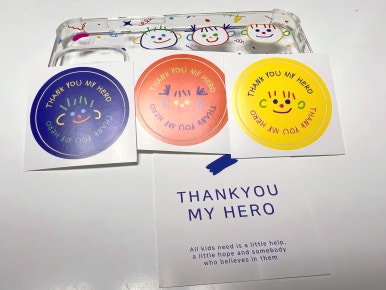 땡큐마이히어로는 수익금 판매 수익의 50% 이상을 한국소아암재단, 세이브더칠드런 등에 기부 후원한다. 영업이익의 50%라니 대단하다.