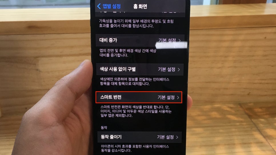 밑으로 스크롤해 주신 후 "스마트 반전" 을 눌러줍니다.