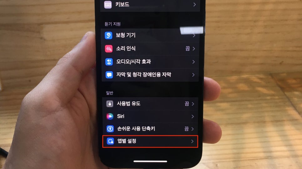 밑으로 스크롤해 주신 후 "앱별 설정" 항목을 찾아서 선택해 줍니다.