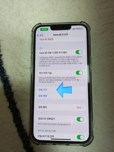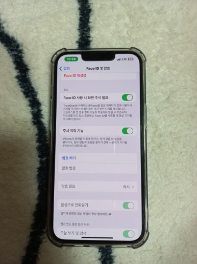 최신단말기 아이폰에는 Face ID 및 암호라고 되어있어요 누르고 들어갑니다