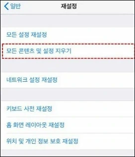 1.설정 > 일반 > 재설정에서 모든 콘텐츠 및 설정 지우기를 선택합니다.