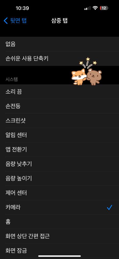 저는 이중 탭에 스크린샷, 삼중 탭에 카메라를 지정해서 사용 중입니다.