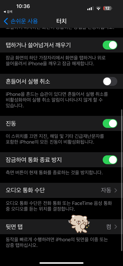 마지막으로 알려드릴 건 아이폰 뒷면 탭 설정입니다.