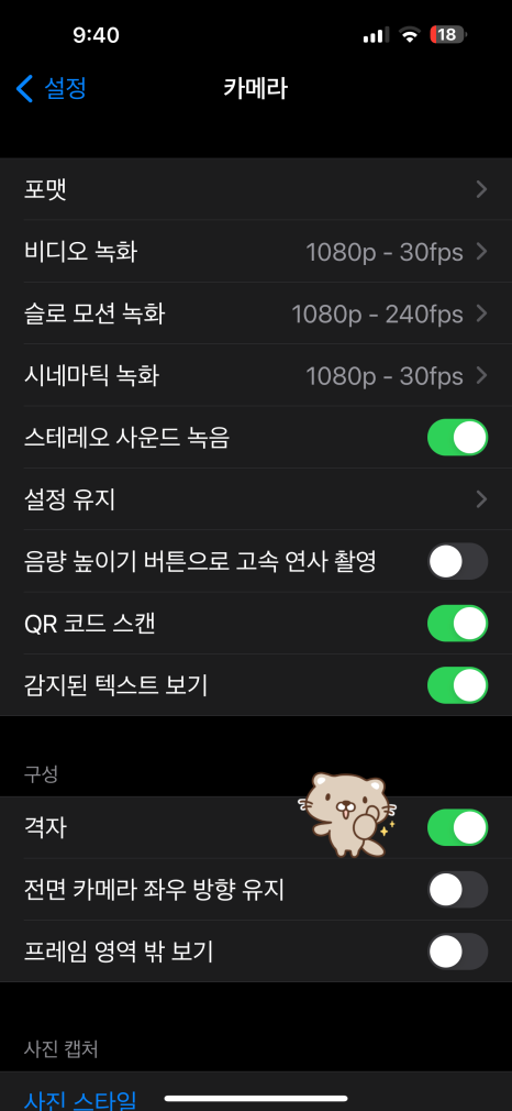 첫 번째로 알려드릴 건 아이폰 카메라 설정입니다.