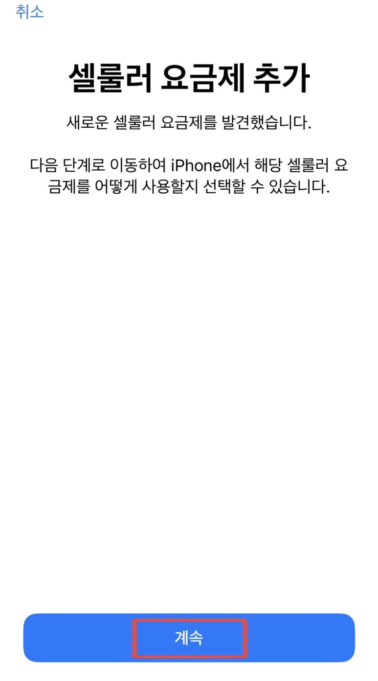QR코드 스캔이 완료되면, 셀룰러 요금제 추가가 뜨면서 아래와 같이 나옵니다.
