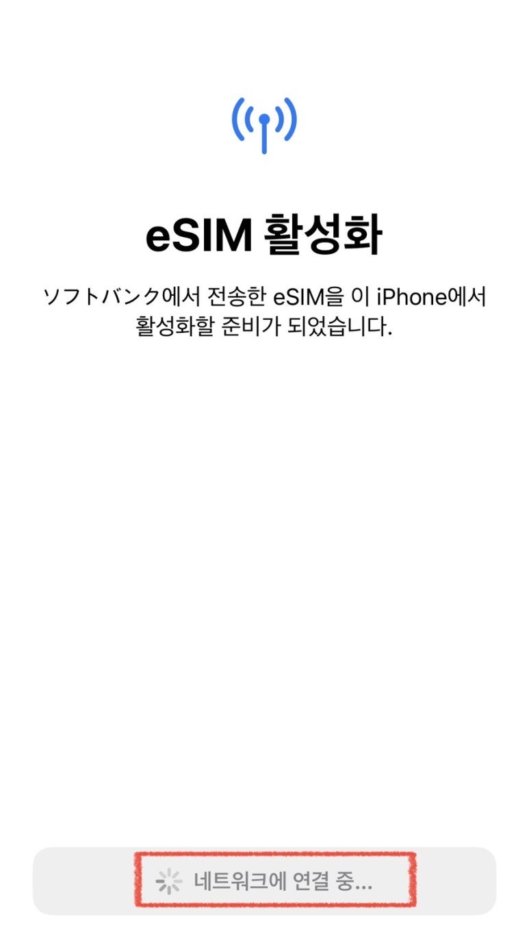 "계속" 버튼을 누르시면, 사진과 같이 "활성화 중", "네트워크에 연결 중"이라는 문구가 뜨실 텐데요.
