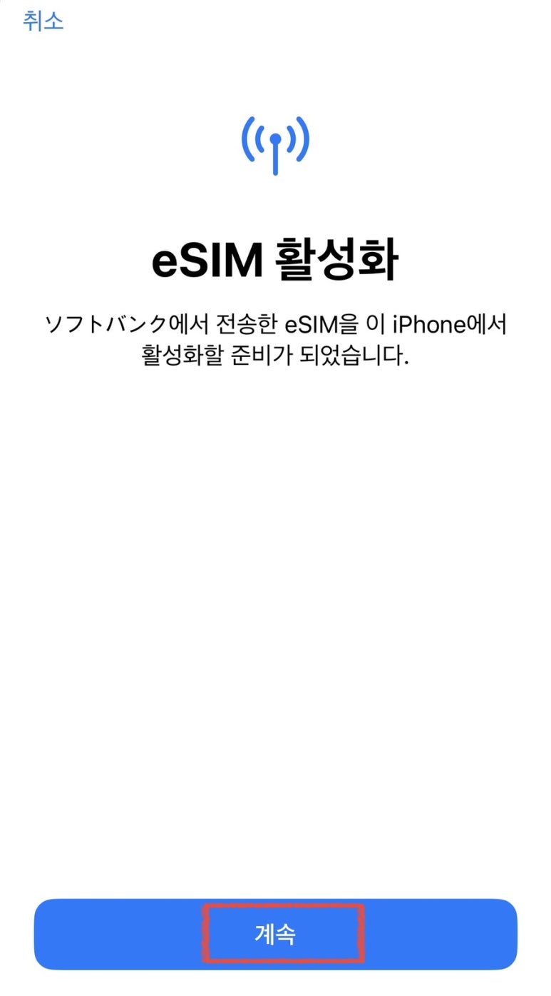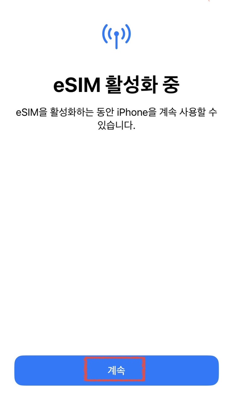 eSIM 활성화 중에서도 "계속"을 눌러주세요.