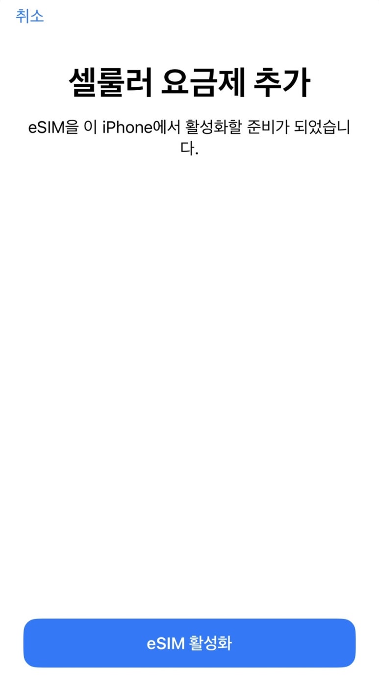 eSIM 추가 버튼을 누르셨다면 아래와 같은 사진이 나오게 될 텐데요.