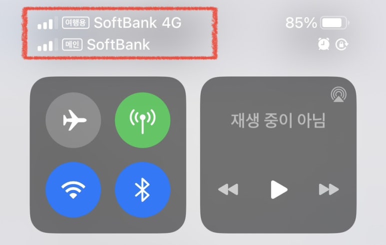 제어창에 들어가서 확인해 봤을 때도 여행용 SoftBank 4G망이 제대로 잡히고 있는 것을 확인하실 수 있습니다.